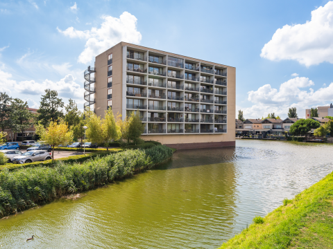 De ruime slaapkamer biedt veel comfort en rust. Dankzij de inbouwkast is er volop opbergruimte, en de nette wandafwerking en ingebouwde spots zorgen voor een verzorgde en moderne uitstraling. Via een deur heb je direct toegang tot het tweede balkon, dat uitkijkt over het groen en de schilderachtige Karnemelksloot.
